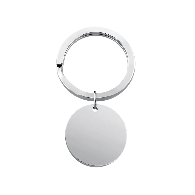 Izdelan iz poliranega nerjavečega jekla ta trpežen obesek vsebuje natančno gravuro, ki se sčasoma ne obrabi. Njegova kompaktna okrogla oblika in trden obroč omogočata enostavno uporabo na ključih, torbah ali zadrgah ter združujeta praktičnost in osebni slog.